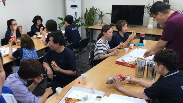 야근전 간식 타임에 피자 파티