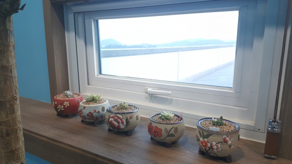 창가에 나란히 모인 다육이들...